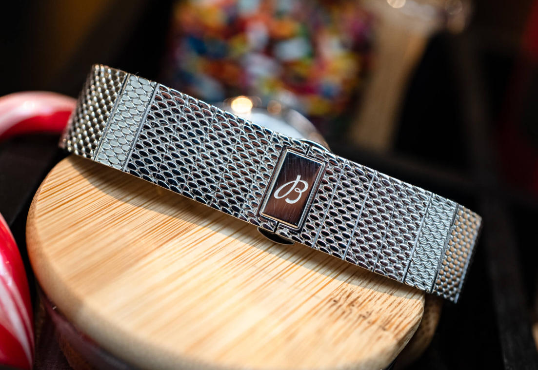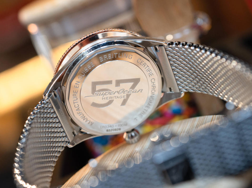 I mentioned that what drew me to the mustard-dialed display model was the mesh bracelet. In my opinion, no one does mesh quite like Breitling. The thick, substantial mesh on the Superocean Heritage II is so impressive and comfortable it makes you wonder why other brands bother. But something like that would’ve overwhelmed the 1:1 clone Breitling Superocean Heritage ’57 Highlands watches, including the new Highlands watches, so Breitling did us one better by pairing it with a fitted, tapering 18mm mesh strap with beads and a tighter weave. The butterfly closure may irk some, but the bracelet has a number of removable links for getting as near to the perfect size as possible. As with almost any mesh bracelet, it’s soft and comfortable thanks to its articulation. To hammer home the Highlands theme, Breitling has paired each model with a color-coordinated “tweed-inspired” strap on a deployant clasp. The tweed-inspired material, made from silk and wool, is soft, and the straps are much more pliant than ones made of actual tweed that I’ve encountered, which are frequently stiff due to the backing leather.