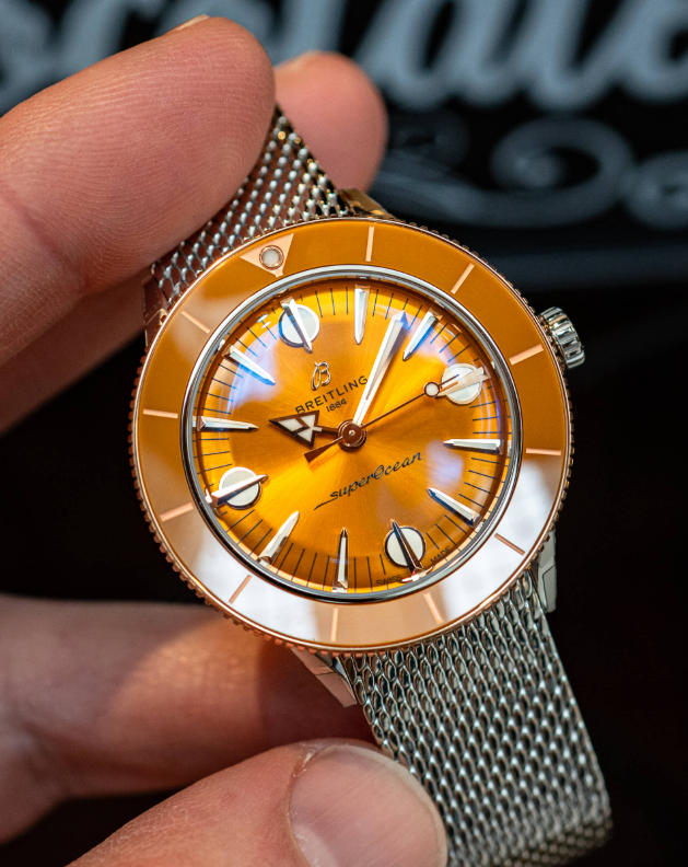 The best replica Breitling Superocean Heritage ’57 Highlands watches is available in four colors, evident in the dial and the matching ceramic bezel insert: beige, green, mustard, and blue (kudos to Breitling for not trying to be at all cute with the color naming). Once I realized I was shooting for a review, I decided to focus on the mustard dial, largely because I was so taken by the mesh strap. First, though, the case itself. At 38mm, the stainless steel cases offer the smallest package in the Superocean line, a full 4mm narrower than previous ’57 models, the first of which were introduced in 2020. For Breitling, 38mm is downright dainty, and that’s furthered by the quoted 9.9mm thickness and 42mm lug-to-lug. It all comes together in a slender-lugged, curved silhouette that sat easily on my wrist and should do the same on most. The models get a domed sapphire crystal and a pull-out crown, with 100m water resistance.